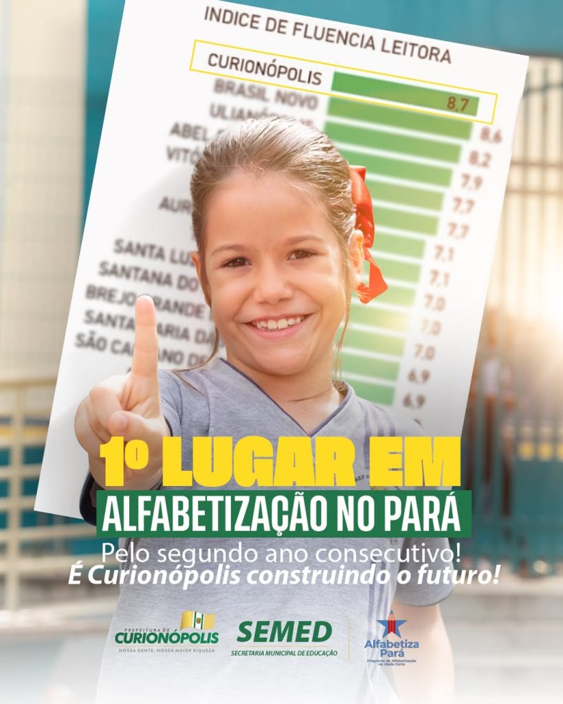 A conquista não é isolada. Em 2023, Curionópolis já havia alcançado o primeiro lugar em alfabetização no estado e registrado a melhor nota do IDEB da região de Carajás, demonstrando evolução consistente e contínua nos indicadores educacionais.