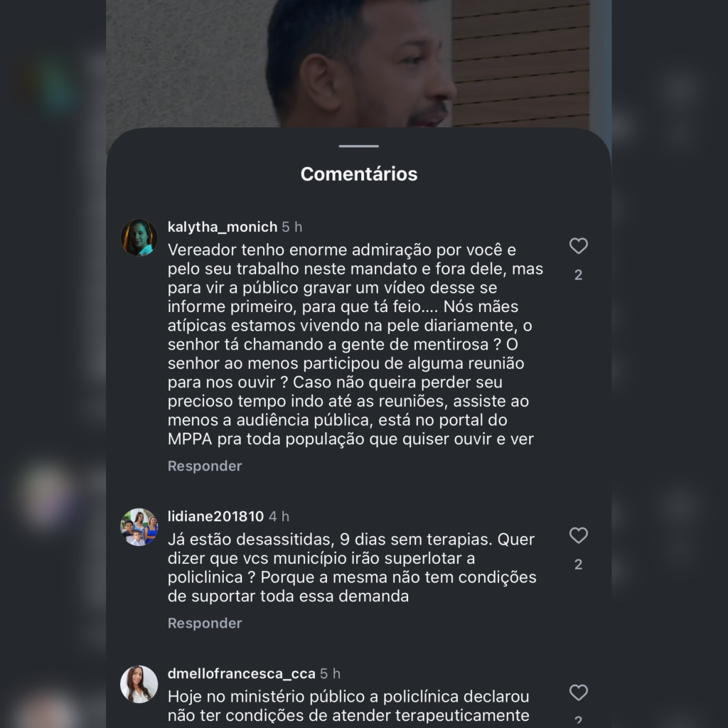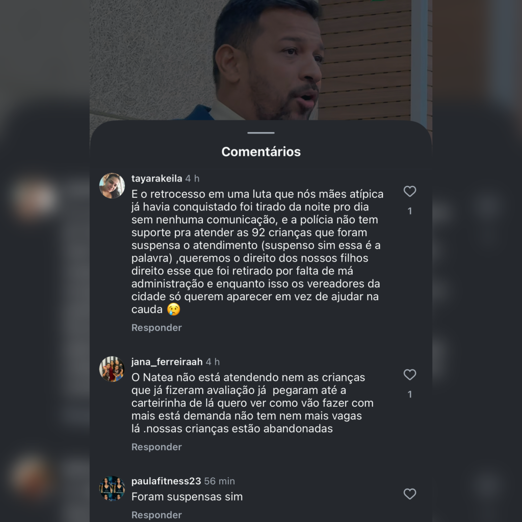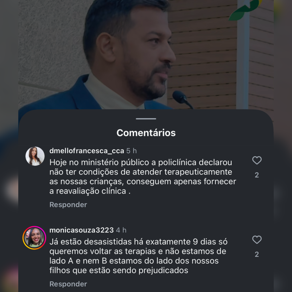 Durante a fala, o vereador também se contradisse ao tentar justificar a situação. Primeiro negou que as terapias tivessem sido suspensas, chamando as denúncias de “fake news”. Pouco depois, admitiu que os atendimentos foram interrompidos por “falta de saldo contratual”, reproduzindo o discurso da Secretaria de Saúde.